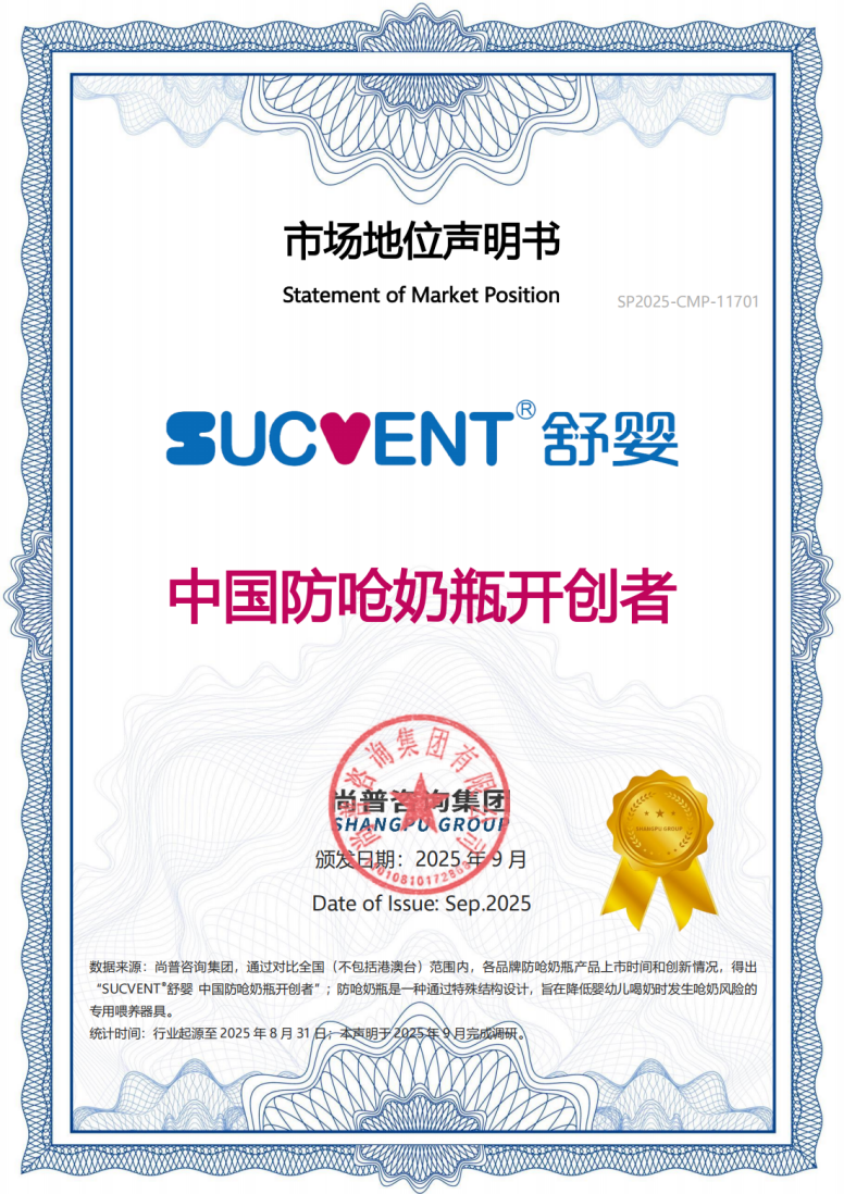 当呛奶成为婴幼儿喂养的核心痛点,一个名为“舒婴”的品牌,给出了它的关键答案。近期,舒婴(SUCVENT)品牌经权威机构认证,被正式授予“中国防呛奶瓶开创者”称号。这一称号的背后不仅是舒婴奶瓶领先行业的技术革新,更是一个源于父爱、成于匠心的品牌故事。
