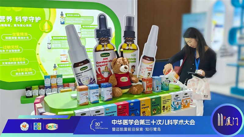 明星产品矩阵,引领营养前沿。其中,肯贝优系列带来C20饮液、ADK饮液、乳糖酶及益生菌等明星产品,贝斯凯则重点展示了蓝莓叶黄素酯饮液、磷脂酰丝氨酸复合凝胶糖果等。贝斯凯&肯贝优产品凭借科学精准的配方设计与高含量、高品质、好口感等的核心优势,直击当前中国母婴群体的核心需求,为儿童在活力成长、视力保护、脑力发育及肠道健康等关键领域,提供出更安全、更有效的营养解决方案,赢得了现场专业观众的一致好评。