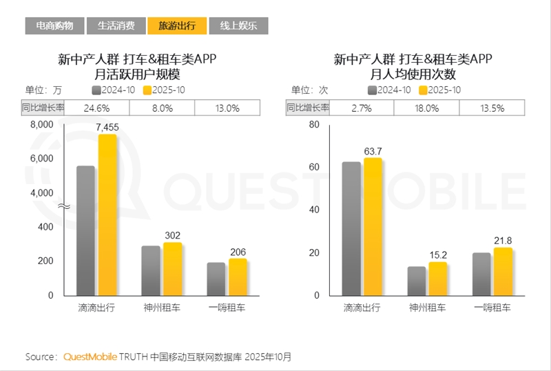 10、打车、租车平台中新中产用户规模与使用频次正同步攀升