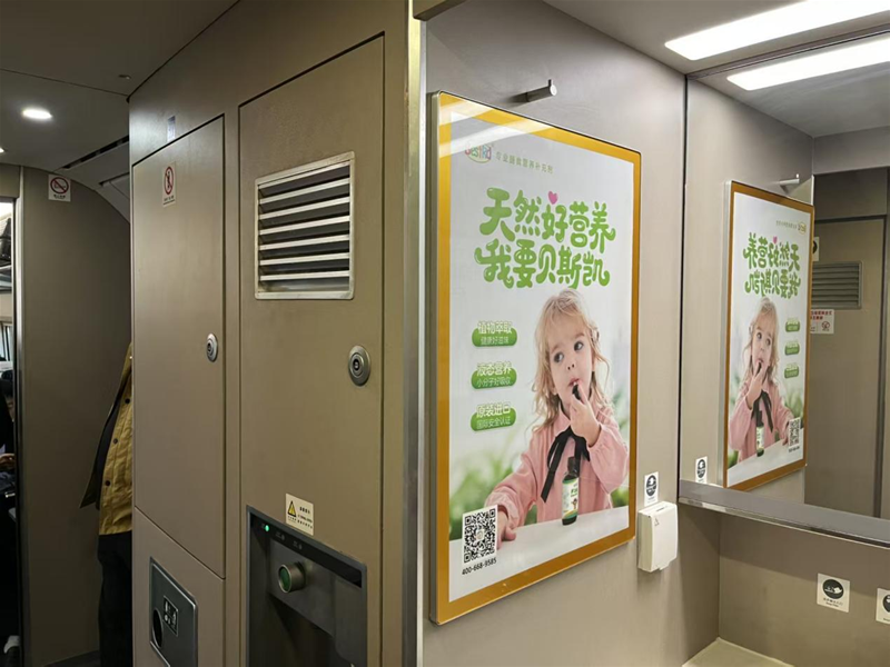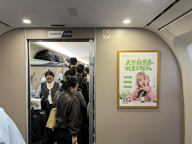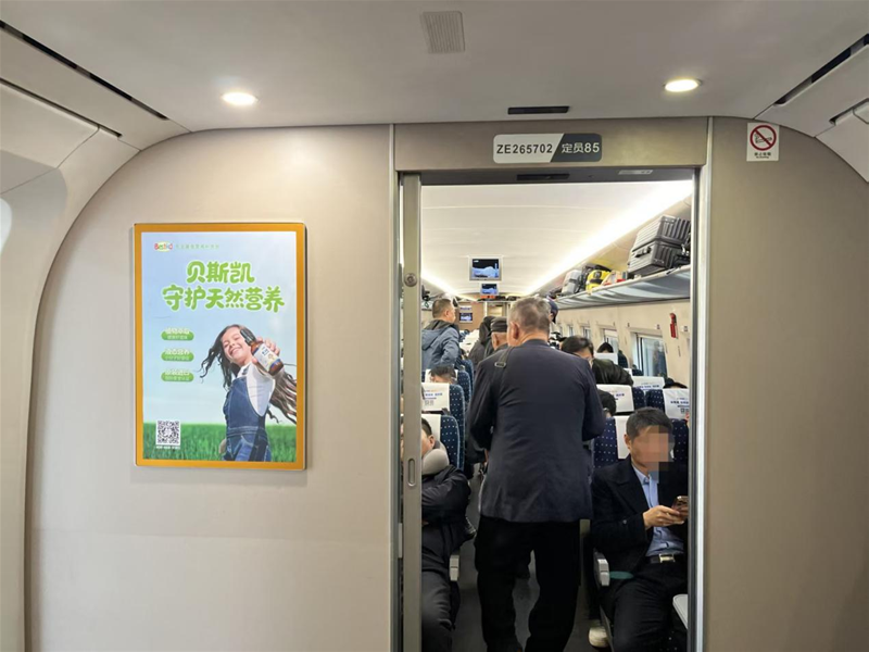 高铁是现代生活的缩影,承载着人们的期盼与重逢。来到车厢内部,一幅幅描绘孩子健康成长的主题广告,悄然连接起贝斯凯与每一颗关注儿童营养的心,吸引了不少乘客驻足观看。