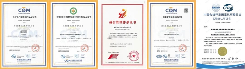 不仅如此,企业在规范化、标准化运营道路上同样步履坚实,先后通过 GMP(良好生产规范)、HACCP(危害分析与关键控制点)、诚信管理体系、质量管理体系等一系列严苛认证,以全方位、多层次的保障体系,为每一滴奶源、每一款产品的卓越品质保驾护航,持续为消费者递上放心、优质的羊乳制品。