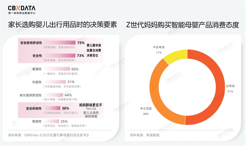 从横向来看,场景化与智能化正不断拓展母婴消费的边界。在场景化方面,新一代父母愈发注重“场景幸福感”。例如,出行场景中,儿童舒适性与高景观体验则成为关键考量。而在智能化维度上,超过半数的Z世代妈妈表示更倾向于使用智能母婴设备。可以说,孩子“少”了,爱却更“智能”了——这正是当下年轻父母育儿方式的真实写照。