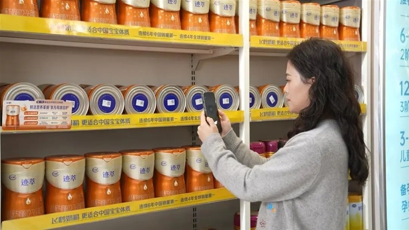 图:消费者扫码体验全球首个奶粉新鲜原料溯源系统