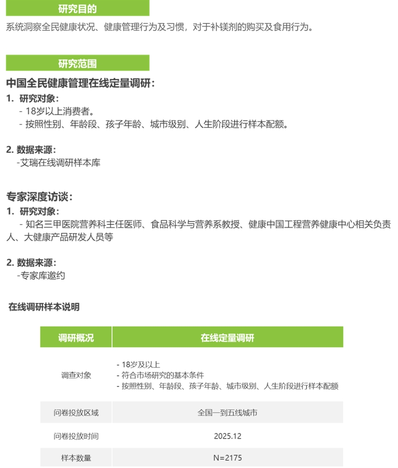 关注全民及细分人群镁营养状况,驱动补镁场景化解决方案落地