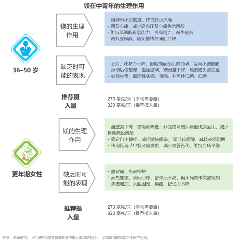 中青年属于镁需求上升期,隐性镁消耗增加,需定期检测,储备“镁力”资本。