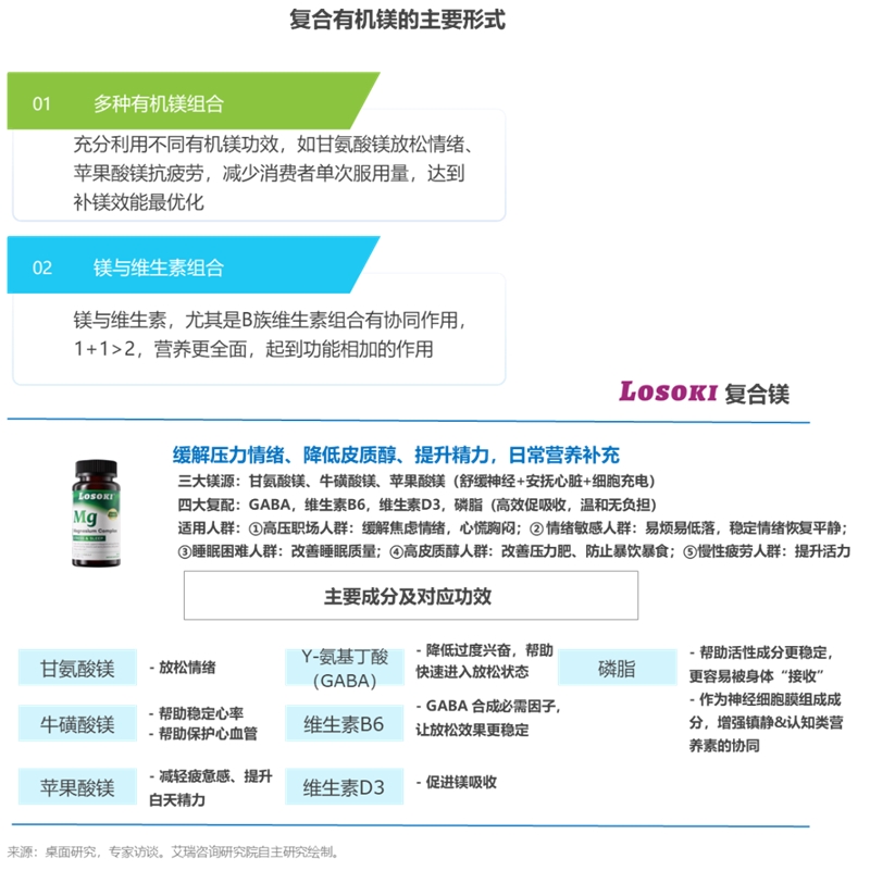 复合有机镁通过“不同形态有机镁复合”和“镁+维生素”实现营养协同效应