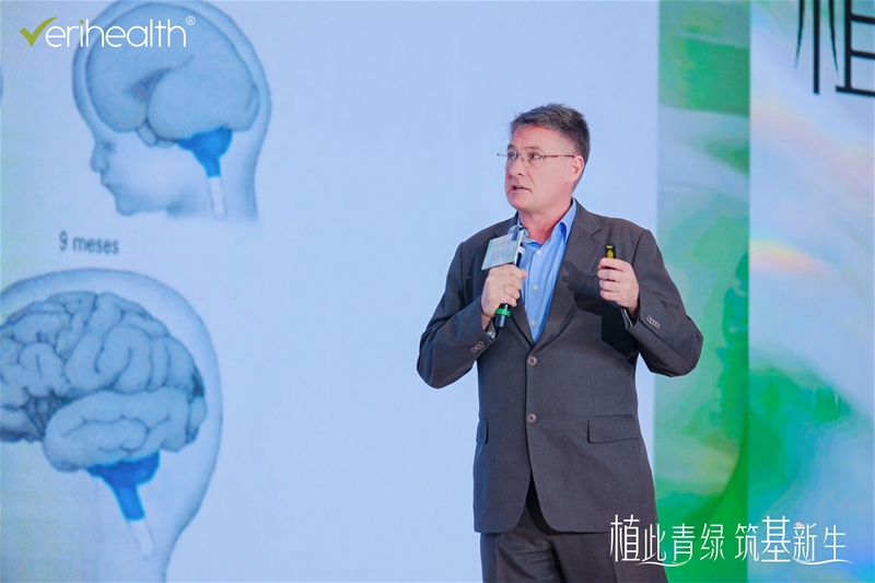 在万众期待中,巴塞罗那大学医药学博士、西班牙NEO集团研发技术顾问JOAQUÍN TEJERO从整体神经连接质量和神经系统功能健康的角度,带来了维丽海斯脑科学新品的研发解读。他表示,结构性、功能性以及调节性三大营养的结合组合,更能够为儿童和青少年的脑发育及认知功能提供全面支持。