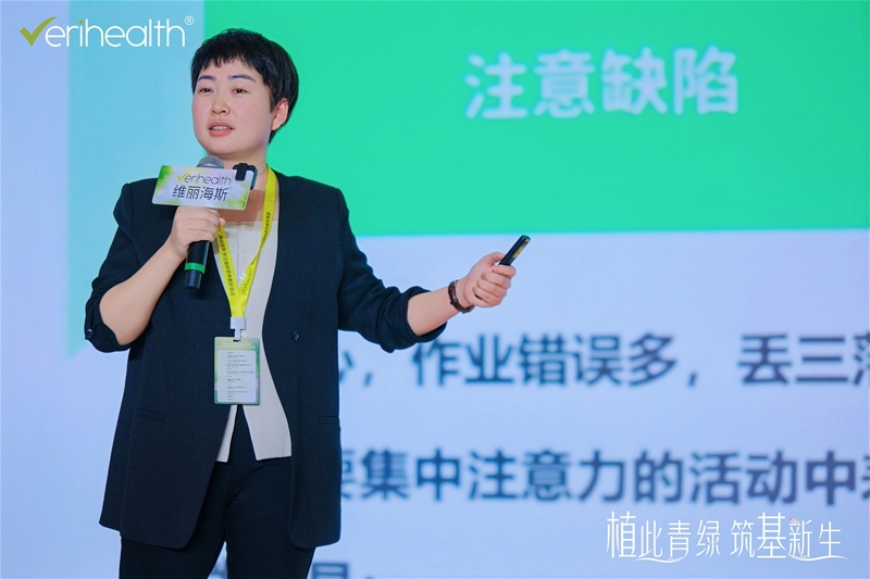紧接着,她聚焦维丽海斯脂质体多维软糖、瑙力优固体饮料粉剂新品,深入剖析基础营养与专注力的科学协同,将最新研究成果与母婴家庭育儿需求紧密衔接。
