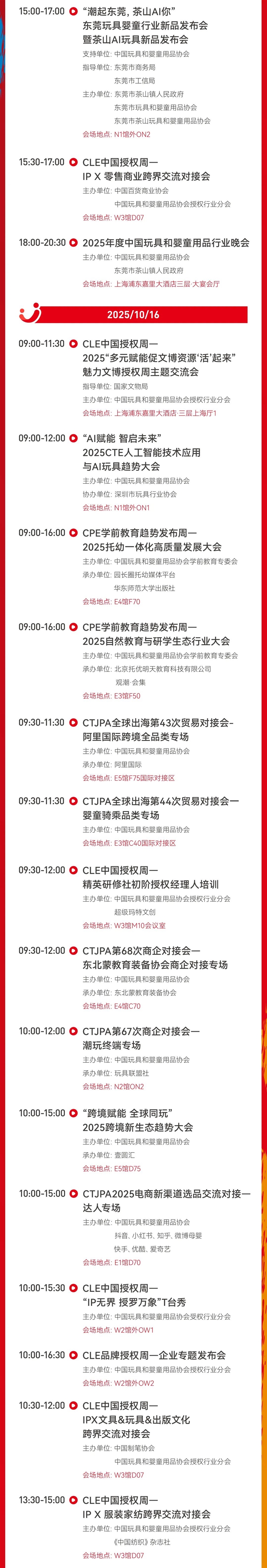 作为国家级行业协会主办,国内外展商和买家首选,全球领先的玩具潮玩、婴童用品、授权、幼教专业化和国际化商贸平台,中国玩协四展吸引了全球41个国家和地区以及30大玩具、婴童用品主产区2629家展商携5426个品牌、2600+全球正版IP参展,展览面积覆盖上海新国际博览中心全部展馆达23万平方米,齐聚国内外10万+专业观众。
