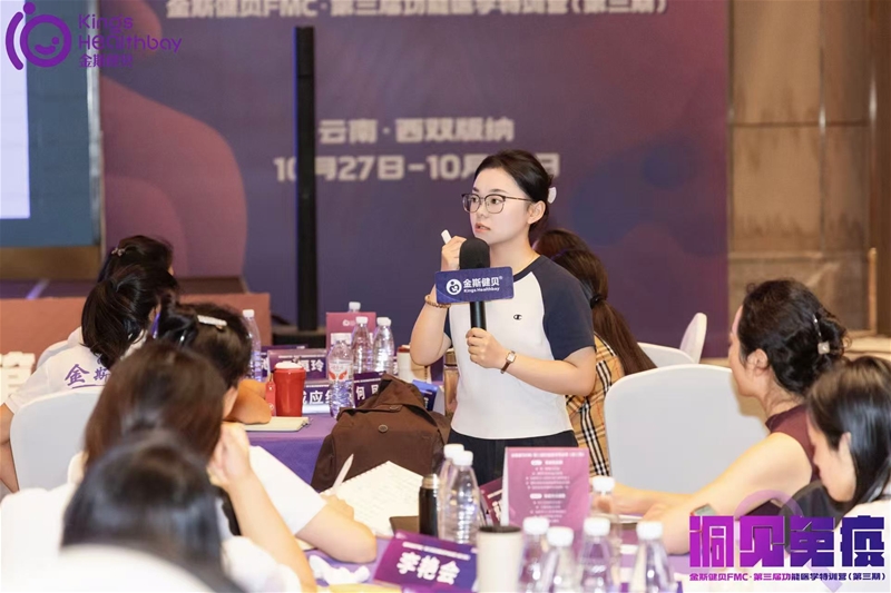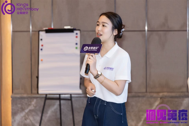 下午的课程同样紧扣实践。王老师的《如何做好抗炎饮食》提供了落地性极强的饮食指导,而喻老师的《益生菌大解析》则是一场关于微生态的科学盛宴。不仅讲解了不同菌株的特异性功能,更指导学员如何根据不同的健康诉求(如过敏调理、肠道支持、情绪管理等),为消费者选择像金斯健贝这样具备菌株清晰、活菌数足、临床验证三大要素的高品质益生菌产品。