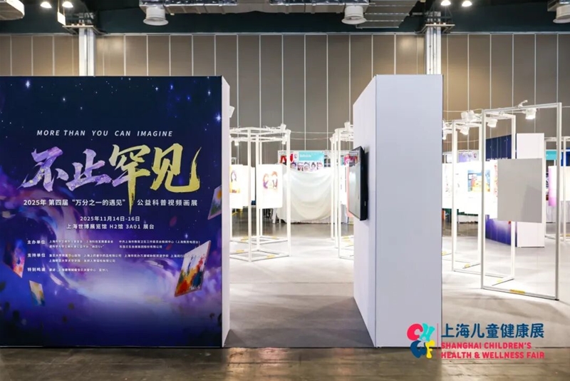 “2025万分之一的遇见——阳光科普公益行‘不止罕见’公益科普视频画展”成为展会一大温情亮点,集中展示了罕见病群体的艺术才华与生命韧性。本次画展吸引29位罕见病画家与23位学生画家参展,共展出68幅(组)作品,既展现了罕见病患者多彩的内心世界与人生价值,也通过跨界参与凝聚了社会各界对罕见病群体的关注与支持。其中,上海闵行区万科双语学校、万源城协和双语学校的孩子们,在参与罕见病科普活动后,以纯真画笔传递对罕见病群体的真挚祝福,为画展注入了童真暖意。