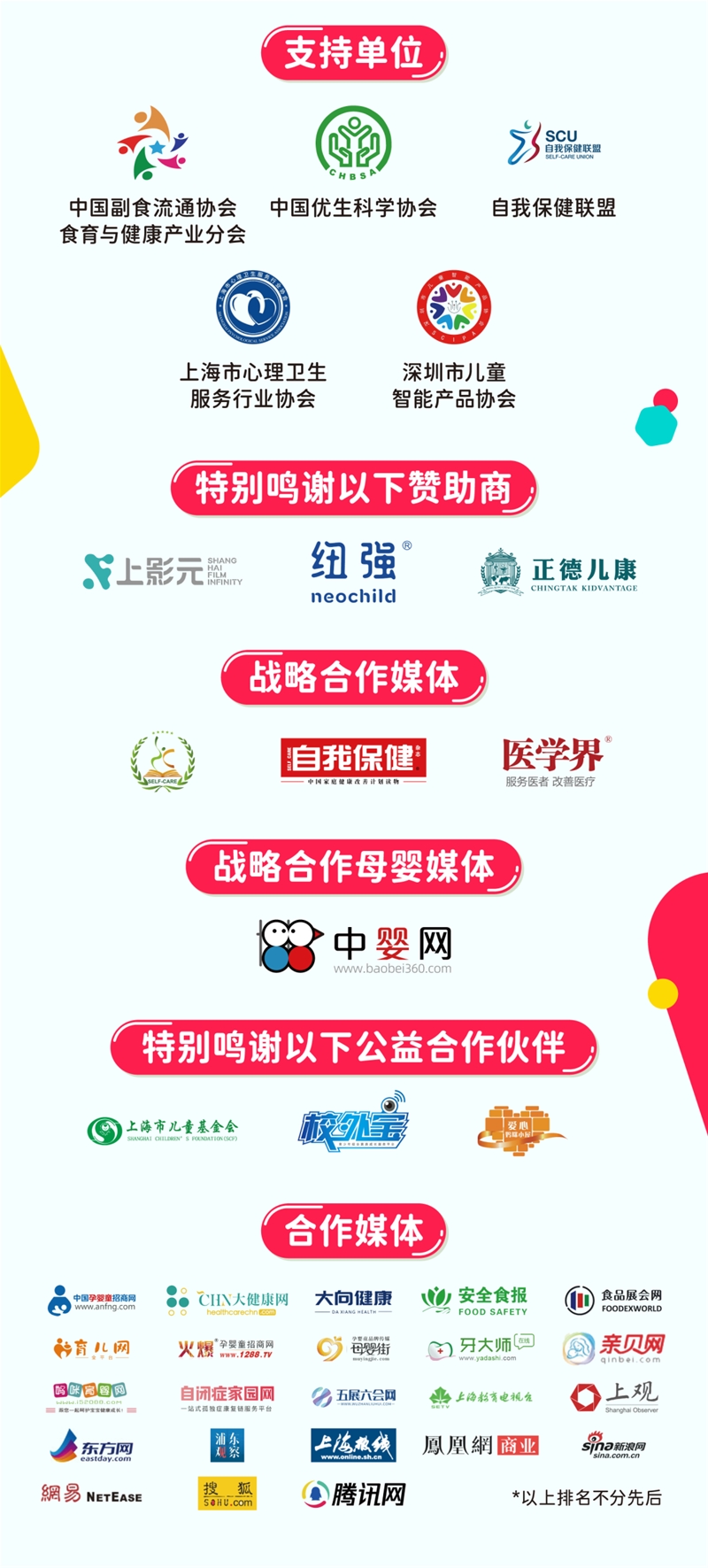 本届展会由博罗那展览(上海)有限公司与东浩兰生会展集团股份有限公司联合主办,并与同期举办的中国上海国际童书展战略联动,形成以“健康+阅读”为核心的展会矩阵。展会得到了中国副食流通协会食育与健康产业分会、中国优生科学协会、自我保健联盟、上海市心理卫生服务行业协会及深圳市儿童智能产品协会的专业支持,上影元、纽强、正德儿康等知名企业的鼎力协助。