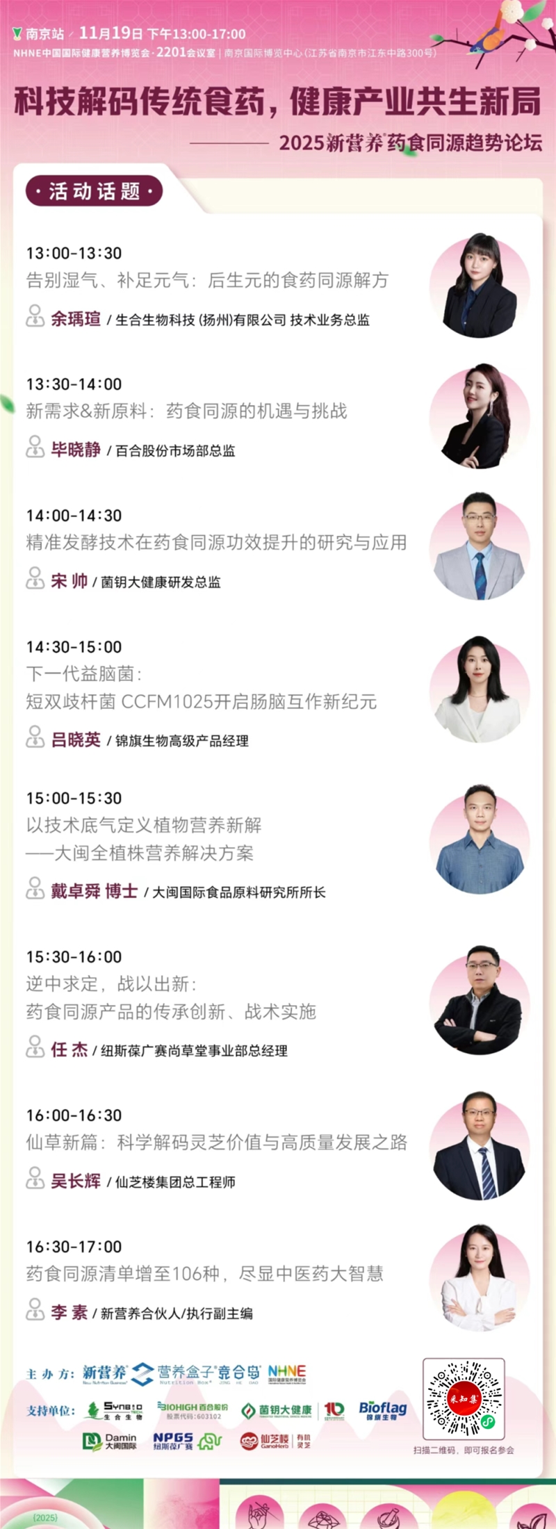中国国际健康营养博览会(NHNE),作为亚洲健康营养与保健食品领域的旗舰盛会,始终屹立于行业潮头,被公认为全球营养健康产业发展的“风向标”。NHNE将于11月19-21南京国际博览中心举办,在这里,不仅汇聚前沿产品与创新科技,更凝聚对未来健康趋势的深刻洞察。展会期间将举办30余场高端会议论坛,特邀200余位行业顶尖专家——包括政府机构代表、协会领导、科研学者及品牌渠道领袖——共话营养健康领域的热点议题与未来走向,为行业发展注入前瞻思维与创新动力。