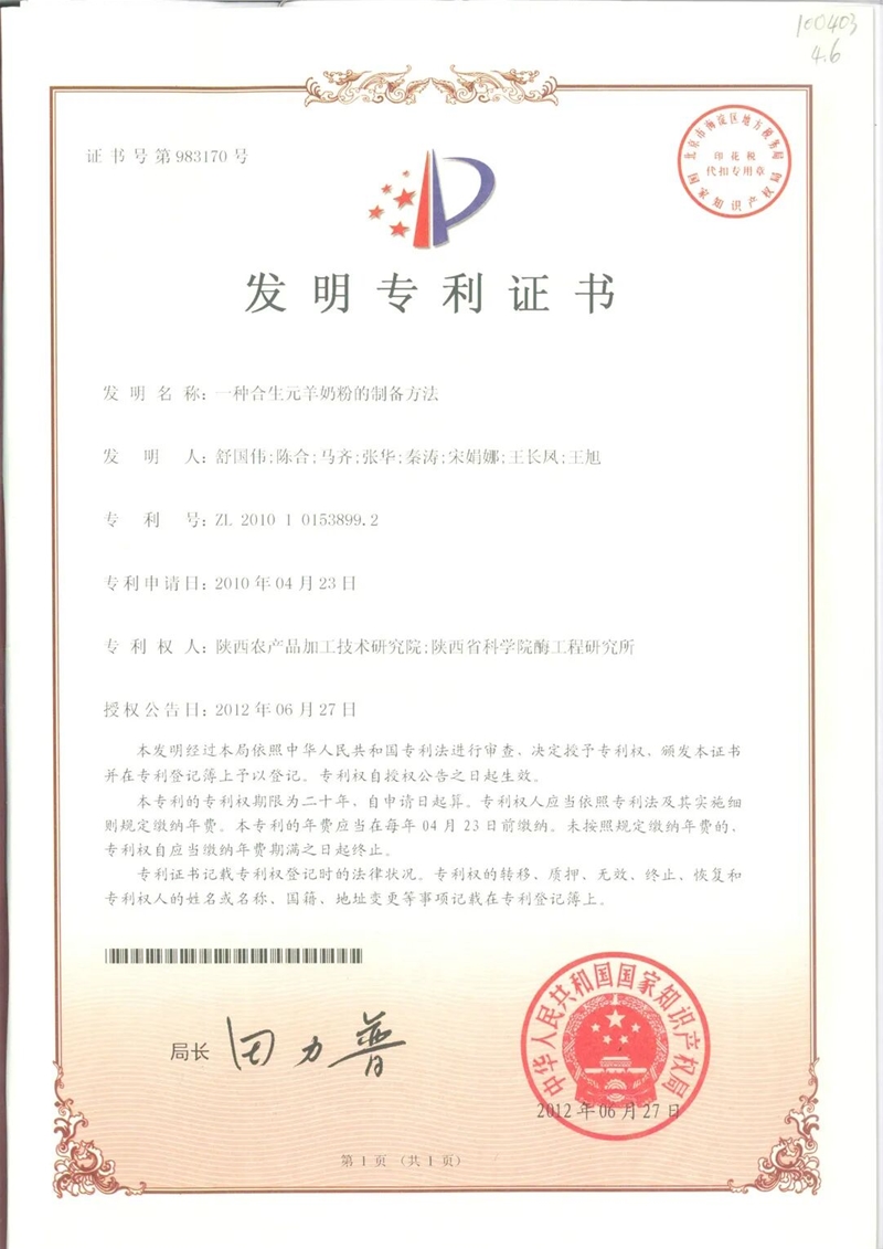 作为“省级企业技术中心”和“咸阳市功能性乳品工程技术研究中心”,雅泰乳业多次获得“省、市级科研成果”10余项,专利23项,企业技术创新和企业实力得到充分肯定。