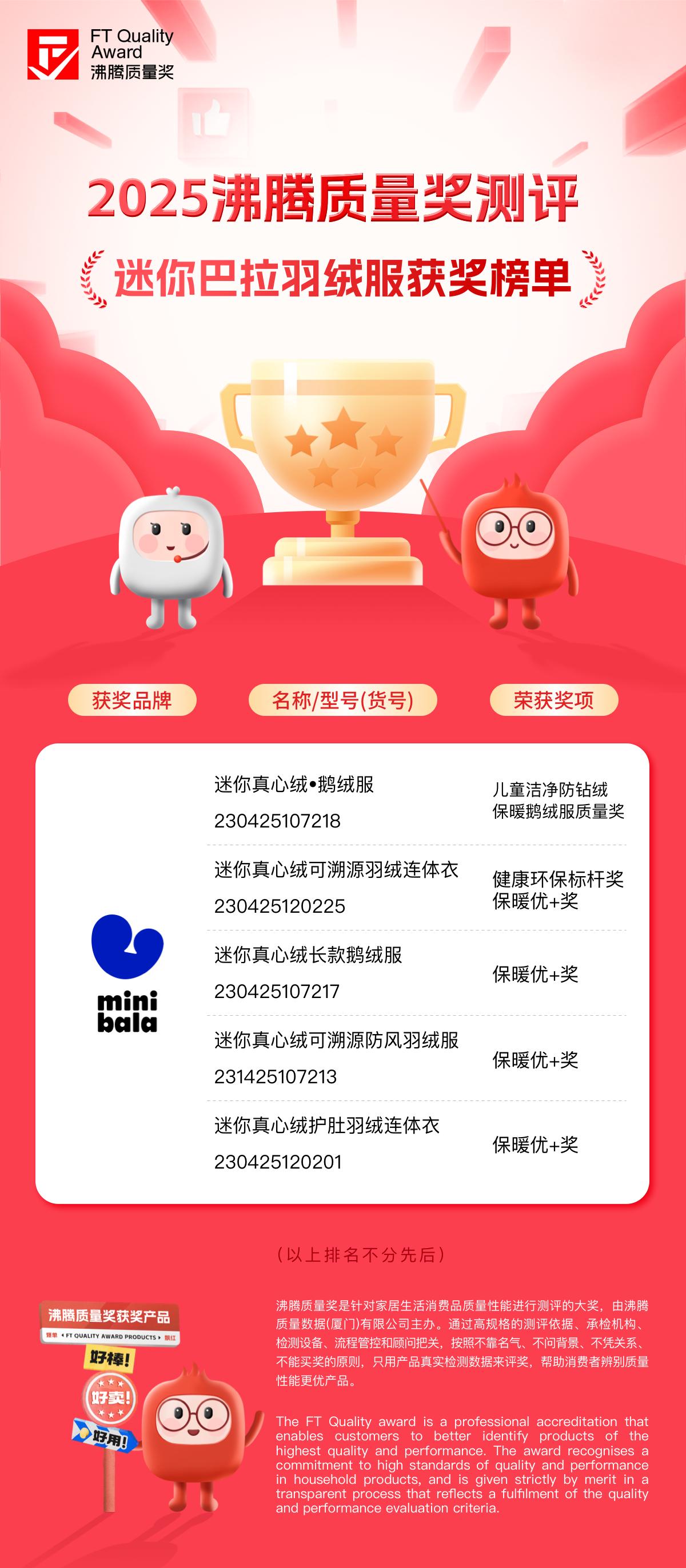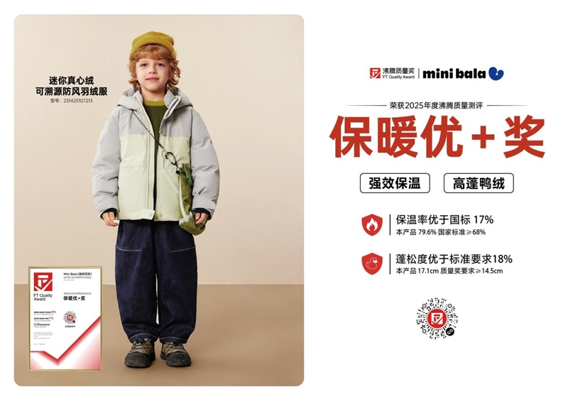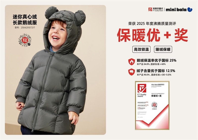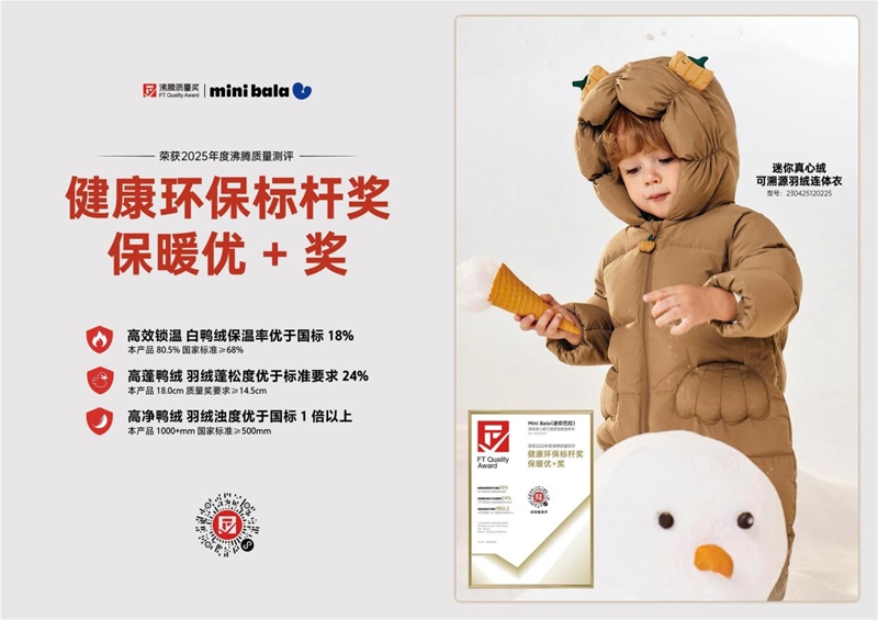 此次五项大奖的斩获,不仅是对Mini Bala 过往深耕的认可,更预示着儿童羽绒服行业将正式进入以品质为核心、以创新为驱动、以责任为底色的高质量发展阶段。从 Mini Bala 赢得超 780 万家庭信赖的市场反馈来看,当品牌真正将 “用户需求” 与 “行业责任” 深度绑定,既能成为现代育儿理念的倡导者与高品质亲子陪伴的构建者,也能为行业发展提供清晰的进阶路径。