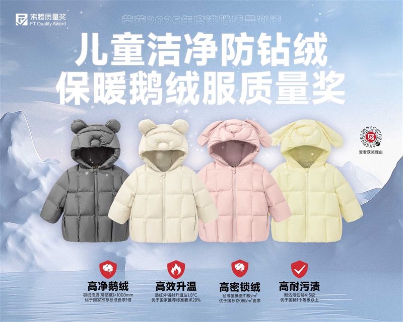 在儿童冬季服饰市场竞争日趋激烈的当下,产品品质与安全性能成为消费者决策的核心依据,也推动着行业向标准化、高端化方向加速升级。2025 年度沸腾质量奖测评结果的公布,为儿童羽绒服领域的品质竞争提供了权威参照。