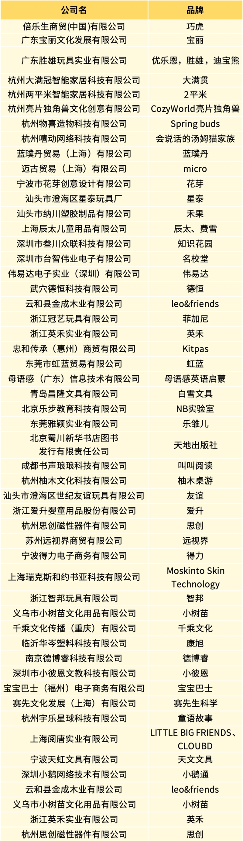 入驻展商名录