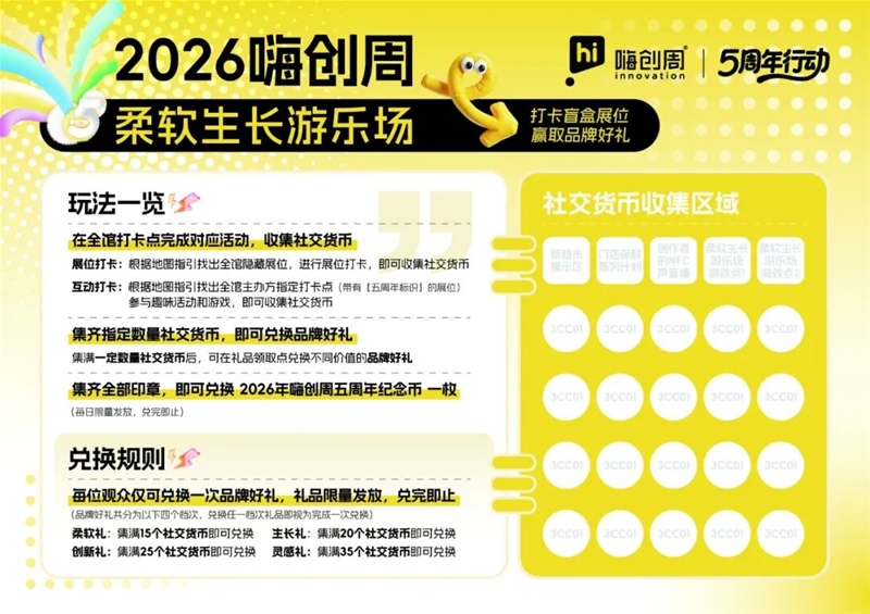 参与嗨创周现场打卡游戏, 领限量周边!
