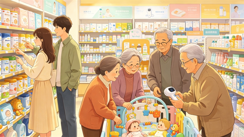 2025年中国母婴市场规模已突破8万亿元,全国超过15万家母婴门店。如此规模的渠道体量,具备服务多代际家庭的能力。