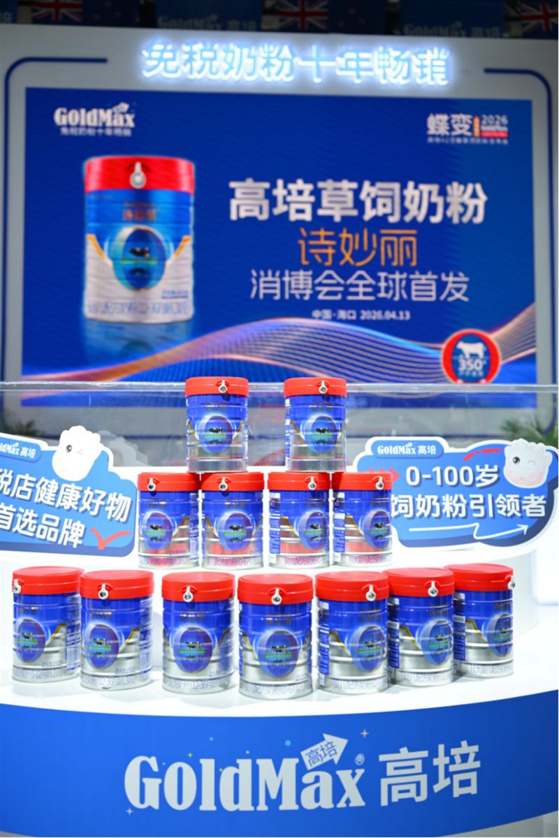 2026年4月13日,第六届中国国际消费品博览会在海南海口盛大启幕。作为连续六年闪耀消博会的免税奶粉领军品牌,高培GoldMax于3号馆3C03展位重磅发布旗下全新力作——诗妙丽A2低敏草饲奶粉,以新西兰黄金A2草饲奶源低敏配方,为敏宝瘦宝打造专属营养方案,全球首发引母婴行业瞩目。