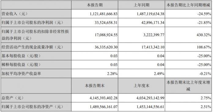 近日,贝因美发布上半年财报,是该公司创始人谢宏重回经营一线后的份半年报。报告显示,今年上半年公司营收11.21亿元,同比下降24.59%;归属母公司所有者净利润3352.47万元,同比下降21.85%。
